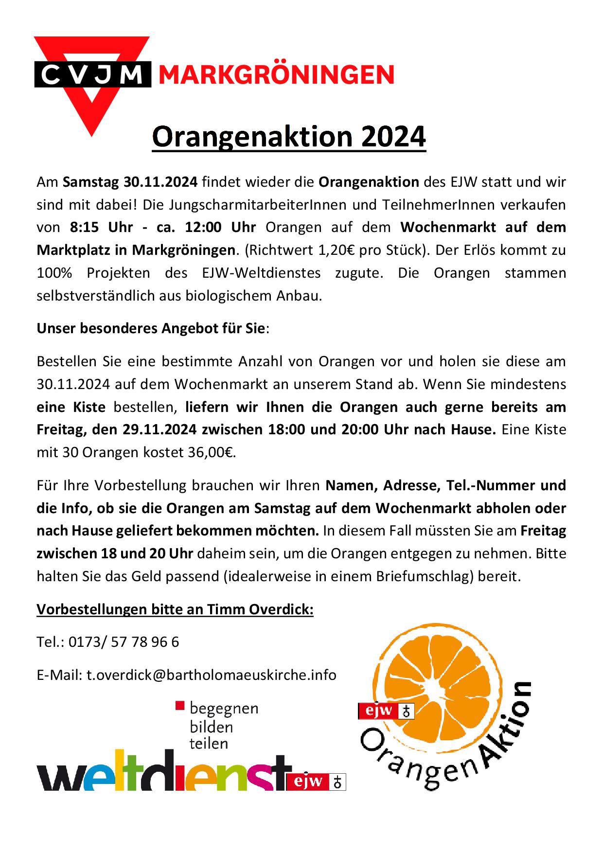 30.11.2024 Orangenaktion 8:15Uhr – ca. 12:00Uhr